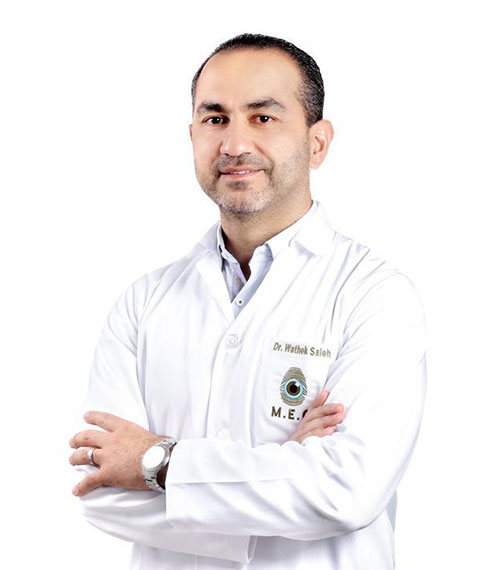 Dr. Wathek Mhd Saleh has devoted his career to diagnosing and treating a wide spectrum of eye conditions with a special focus on the anterior segment of the eye—which includes the cornea, iris, and lens—as well as advanced vitrectomy surgery, a delicate procedure used to treat disorders of the retina and vitreous.